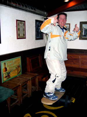 Another chap worth a few words is Andy, the Fireman, or as we like to think of him, moral leader in today's cut-throat world of socio-economic change. A man of choice words, strong drinking arm, hungry builders cleavage for cigarette ends, and snowboarding ability that rivals the best when it comes to charging down knarly chutes and faces deep in snow. Armed with a mobile and a Timeless one six four, 'Tex' can take on the world. Showing a keen sense of his duties he decided to return to the roost a sober man after a week of debaucherous activity, only just though!