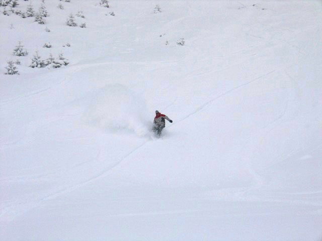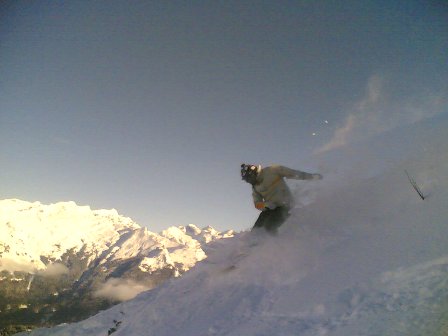 Mrs Searby junior and her husband James brought a civilised group of would-be hopefuls to Loreade. Only a few boarders managed to fly the flag against a strong ski contingent, but I like to think we gave a pretty good fight. Alex definitely proved that all Searby's had a burning desire for competition, and apt ability to throw themselves down anything that presented itself to them. After one night of partying Tom and I were left to paint the town red for the rest of the week, while the gang opted to win and loose millions over Poker evenings. Perhaps the guys would be better off coming out after all!