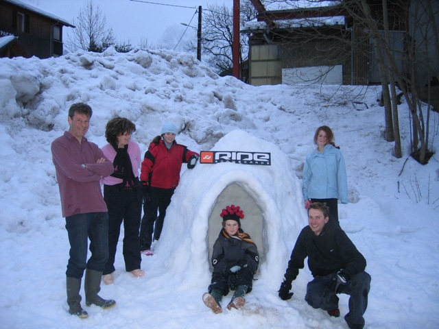 More adventures unfolding over the last couple of weeks have proved fruitful for the Snow Gods, who looked very favorably upon all the efforts put into the building of the Chalet Igloo. Right now it is snowing heavily, so thank you to the team of Sam, Holly, Lucy, Liz and Tim Pendlebury who worked long and hard under the supervision of Master architect Thomas Searby.